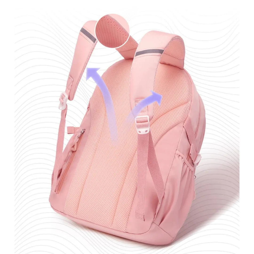 প্রশস্ত এবং নরম কাঁধের স্ট্র্যাপ ও বিশেষ ডিজাইন।মেরুদণ্ডের সুরক্ষা নিশ্চিত করে এবং ওজন বহনের চাপ কমায়। শিশুদের স্বাস্থ্য সুরক্ষার জন্য পারফেক্ট।